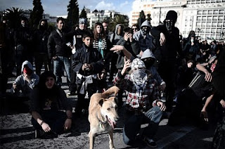 Είναι το ίδιο σκυλί σε κάθε εικόνα και είναι αστείο πώς λαμβάνει μέρος σε διαδηλώσεις και πάντα με την πλευρά των