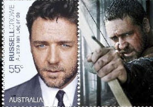 Ο Ράσελ Κρόου έγινε και πάλι γραμματόσημο. Είναι η δεύτερη φορά που η Αυστραλία τιμά τον ηθοποιό της βάζοντας το πρόσωπό του σε συλλεκτική σειρά γραμματοσήμων. Η πρώτη ήταν πριν από ενάμιση χρόνο, όταν κυκλοφόρησε μαζί με γραμματόσημα με το πρόσωπο της Νικόλ Κίντμαν, τους Τζέφρι Ρας και της Κέιτ Μπλάνσετ. Φαίνεται ότι οι Αυστραλού διασκεδάζουν πολύ με το να "γλείφουν" τους αγαπημένους τους αστέρες. Τώρα, η χάρτινη αλληλογραφία τους επιστρατεύεται τιμώντας την πρεμιέρα της νέας ταινίας του σερ Ρίντλει Σκοτ "Ρόμπιν Χουντ".