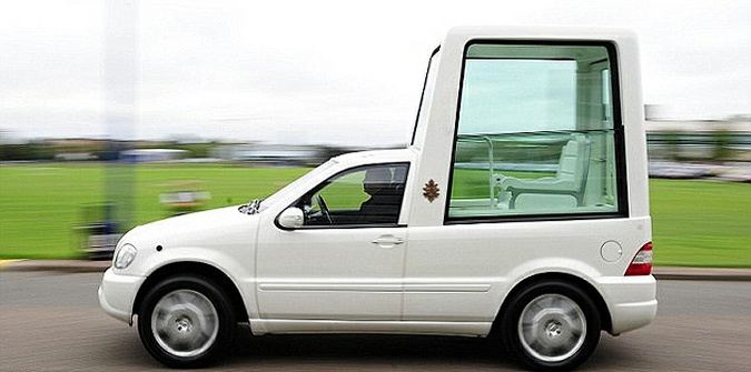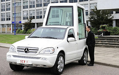 Το Papamobil κοστίζει περίπου $ 300 000, ο κινητήρας έχει όγκο 5 λίτρα καυσίμου - 20 λίτρα.ανά 100 km, το βάρος των μεταφορών είναι 5 τόνων. Μέσα μπορούν να χωρέσουν 5 άτομα. Φθάνει μέγιστη ταχύτητα 285 km / h.