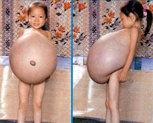 Στην Han Bingbing όταν έγινε 11 χρονών της αφαίρεσαν επιτυχώς τον όγκο 33 λιβρών από την κοιλιά της.