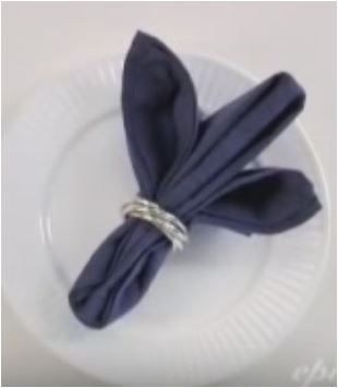 Το βίντεο σας παρουσιάζει το δίπλωμα μιας πετσέτας φαγητού σε επίσημο τραπέζι.