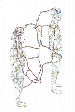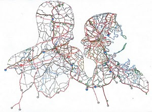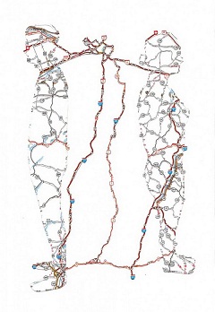 Πρωτότυπες εικόνες ανθρώπων που σχηματίζουν χάρτες οδικούς με τις σιλουέτες τους.