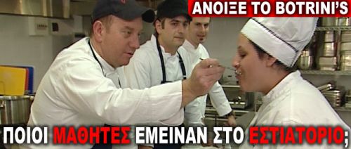 Όσο για την Κατερίνα, το Σταμάτη και το Χρήστο έχουν τη δυνατότητα να κάνουν στο εστιατόριο την πρακτική τους, ενώ η Αγγελική μπορεί να μην έμεινε στο εστιατόριο, της δόθηκε όμως μία υποτροφία 2 ετών ώστε να τελειώσει τη σχολή.