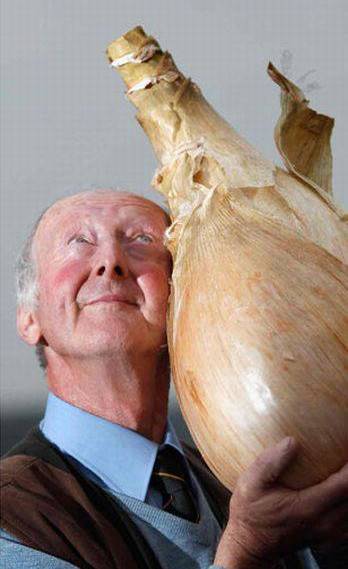 Περήφανος αλλά και χαρούμενος, μια και κέρδισε το ρεκόρ Γκίνες για το βαρύτερο κρεμμύδι του κόσμου.