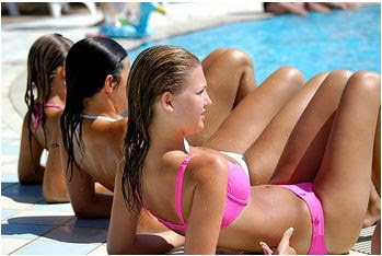 Οι όμορφες γυναίκες μπαίνουν στη γραμμή, στην Ισπανία.Οι υπέροχες μεσογειακές μαυρίζουν στις υπέροχες παραλίες.