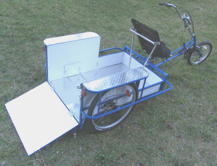Η συγκεκριμένη κατασκευή μπορεί να μεταφέρει ένα ΑΜΕΑ μαζί με το αναπηρικό καρότσι. Και περιλαμβάνει και ράμπα για να ανέβει και να κατέβει το καρότσι.
