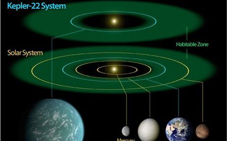 O πλανήτης Kepler 22-b, βρίσκεται 600 έτη φωτός μακριά από τη Γη, είναι 2,4 φορές μεγαλύτερος από τη Γη και έχει θερμοκρασία 22 βαθμών Κελσίου.