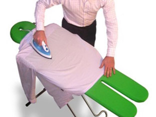 Βήμα πέμπτο: Άπλωσε το πουκάμισο στη μύτη της σιδερώστρας «φορώντας» τους ώμους εναλλάξ, μία τον έναν και μία τον άλλον, έτσι ώστε να σιδερωθούν ομοιόμορφα.