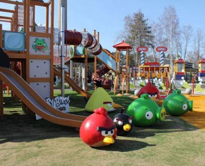 Η φινλανδική εταιρεία Rovio, που κατασκεύασε το δημοφιλές παιχνίδι, αποφάσισε να συνεργαστεί με την εξειδικευμένη εταιρεία εξοπλισμού για παιδικές χαρές Lappset Group και να δημιουργήσει θεματικά πάρκα, ανά τον κόσμο, με τα δημοφιλή Angry Birds.