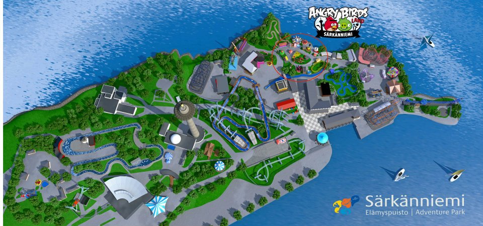 Ο χώρος διαθέτει 12 διαδρομές, που αποτελούνται από ένα καρουσέλ Angry Birds, το Majakka φάρος, ένα μάθημα περιπέτειας και ένα rollercoaster, μαζί με πολλά θεματικά εστιατόρια και ένα επίσημο κατάστημα με εμπορεύματα ότι έχει σχέση με τα πτηνά.....