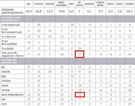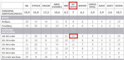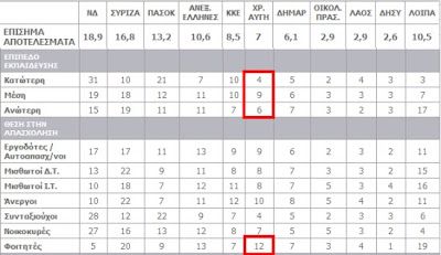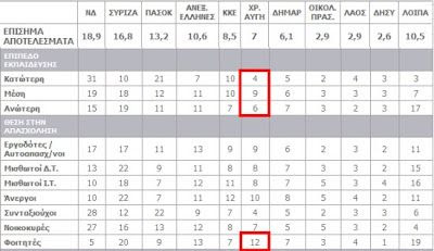 Με βάση τους σχετικούς πίνακες, η Χρυσή Αυγή ήρθε δεύτερο κόμμα στις ηλικίες 18-24 με ποσοστό.....