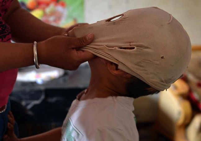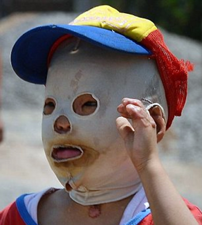 Ο μικρός, που ονομάστηκε «μασκοφόρο μωρό», έχασε τέσσερα δάχτυλα και την όραση από το δεξί του μάτι σε μία καταστροφική πυρκαγιά.