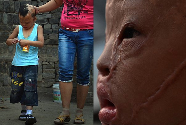 Την ίδια τύχη είχε ο 5χρονος Wang Xiaopeng, που έχασε σχεδόν ολοκληρωτικά τα χαρακτηριστικά του προσώπου του επίσης σε φωτιά.