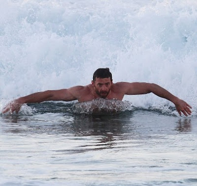 Ο ηθοποιός που πήγε στην παραλία μόνος του τα έδωσε όλα μέσα στο νερό.