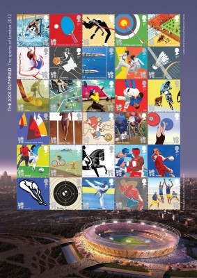 Τα γραμματόσημα απεικονίζουν σημαντικά αξιοθέατα του Λονδίνου που αναμυγνύονται με φωτογραφίες από ολυμπιακά αθλήματα.....
