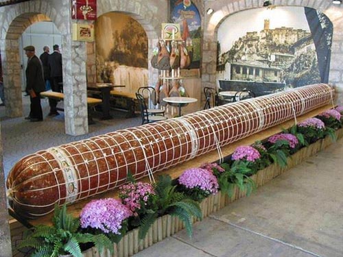 3.Χρώμα : Το χρώμα γενικά πρέπει να είναι ροδαλό στα "αέρος" και ελαφρά σκοτεινότερο στην περιφέρεια.Τα κομματάκια λίπους πρέπει να είναι λευκά. Στα βραστά η τομή είναι πιο ωχρή, αλλά θα πρέπει να υπάρχει ομοιοχρωμία σ` όλη την επιφάνεια.
