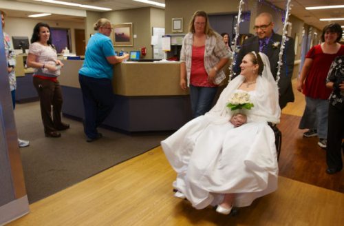 Η Jamie Amos και ο Jonathan Tajoya, ένα ζευγάρι από το Πόρτλαντ, Όρεγκον, παντρεύτηκε μερικές ημέρες πριν η Jamie υποβληθεί σε χειρουργική επέμβαση στον εγκέφαλο για να αφαιρέσει έναν όγκο.
