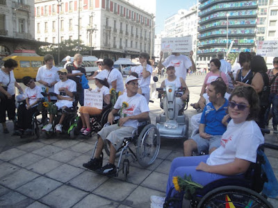 Στη διαμαρτυρία τους δεν ήταν μόνοι τους, είχαν δίπλα τους γονείς και τους ανθρώπους που τους φροντίζουν καθημερινά για να τους μετακινούν με τα καροτσάκια και να τους κρατάνε το χέρι στην πορεία.