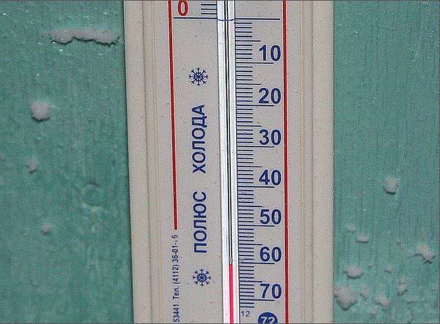 Στο γνωστό χωριό ως «Πόλο του Ψύχους», η χαμηλότερη θερμοκρασία που έχει καταγραφεί ήταν -71.2 ̊ C.