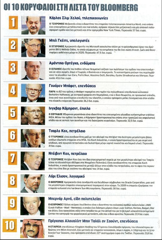 10 πιο πλούσιοι άνθρωποι στον πλανήτη, αλλά και πόσα κέρδισαν μέσα στο 2012