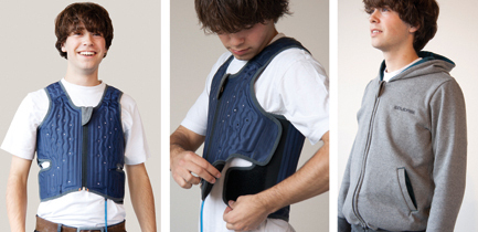 Λειτουργεί με αέρα και όχι με βάρη, είναι ελαφρύ, διακριτικό, και μπορεί εύκολα να φορεθεί μέσα από ένα πουλόβερ χωρίς να γίνεται αντιληπτό.