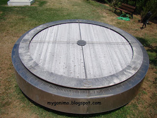 Το οριζόντιο ηλιακό ρολόι δείχνει τον χρόνο στο σημείο που βρισκόμαστε. Η διαφορά με την επίσημη ώρα είναι 1:25 το καλοκαίρι και 0:25 τον χειμώνα. Μέσα από τις καμπύλες γραμμές, εκτός από την ώρα βλέπουμε ακόμη και τον μήνα που διανύουμε.