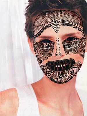 Με μια rotring πένα, ζωγραφίστε στο πρόσωπό σας «μάσκες»με σχέδια που θα εμπνευστήτε μόνοι σας.