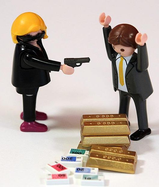 Όπλο, λοστό, γυαλιά για καμουφλάζ, όπως επίσης και κλοπιμαία, όπως χαρτονομίσματα και μπάρες χρυσού!