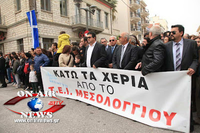 Ένταση δημιουργήθηκε μετά το τέλος της παρέλασης στον Πύργο όταν ομάδα πολιτών και σπουδαστών του ΤΕΙ Πύργου κατευθύνθηκαν προς την εξέδρα των επισήμων φωνάζοντας συνθήματα.