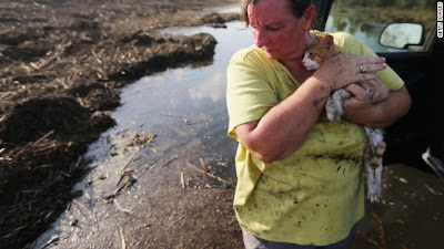 Η Martinez και η οικογένειά της διασώθηκαν με μια βάρκα μαζί με τις πέντε γάτες τους και τρία σκυλιά.
