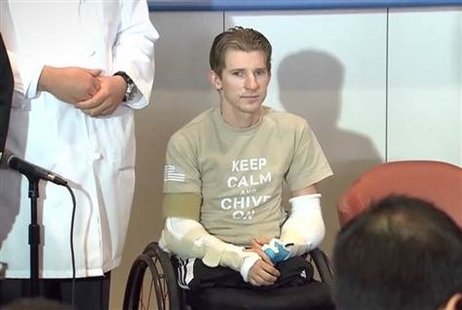 Ο 26χρονος βετεράνος του πολέμου βρέθηκε στο χειρουργικό τραπέζι έχοντας χάσει χέρια και πόδια από έκρηξη βόμβας στο Ιράκ τον Απρίλιο του 2009.