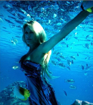 Η παρουσιάστρια ποζάρει στο φακό της καλής της φίλης Ρούλας Ρέβη, μεσα στο βυθό.