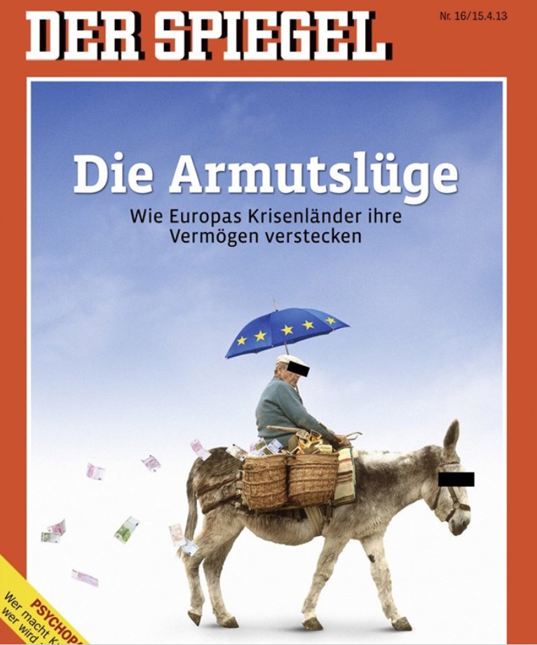 Τα βέλη του εναντίον της Ελλάδας στρέφει για άλλη μια φορά το Γερμανικό Der Spiegel. Το γνωστό περιοδικό κυκλοφορεί με τίτλο «Το ψέμα της φτώχειας. Πώς οι ευρωπαϊκές χώρες που βρίσκονται σε κρίση καμουφλάρουν τον πλούτο τους» και κάνει επίθεση τόσο στους Έλληνες όσο και στους Κύπριους. Χαρακτηριστικό είναι το εξώφυλλο που....