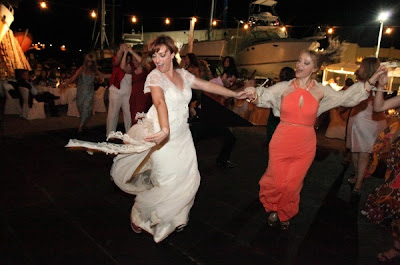 Το γλέντι ξεκίνησε από την Παρασκευή που έφτασαν όλοι στο νησί της Σύρου με καντάδα από τον Αντώνη Λουδάρο και οργανοπαίχτες κάτω από το παράθυρο των μελλονύμφων και συνεχίστηκε με τρελό κέφι από όλους όσοι συμμετείχαν στην χαρά της γνωστής ηθοποιού και του εκλεκτού της καρδιάς της.