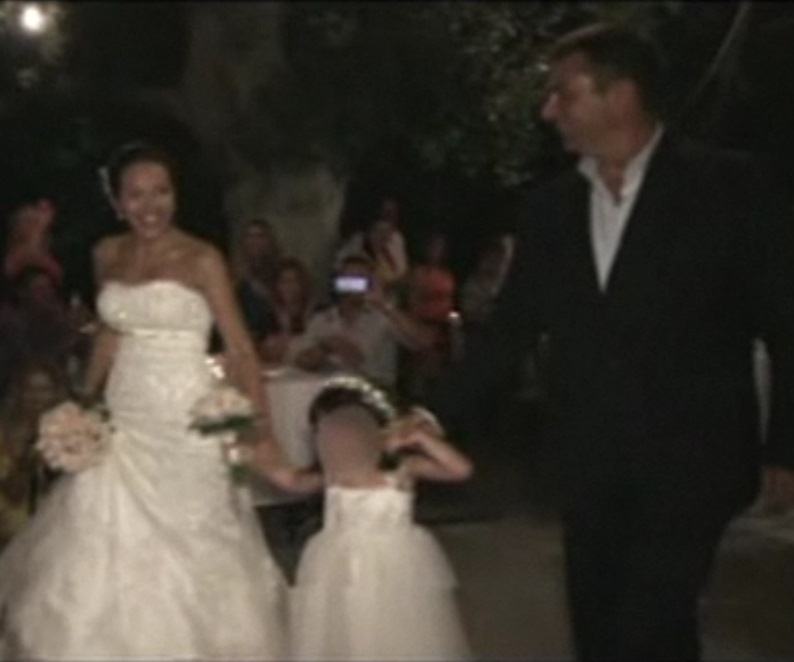 Φορώντας ένα λευκό νυφικό και έχοντας για παρανυφάκι την μικρή τους πριγκίπισσα, η Αθανασία έφθασε στην εκκλησία και έλαμπε από ευτυχία.