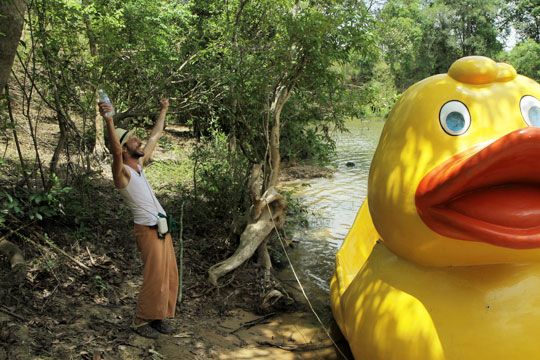 Δεν είναι του χαρακτήρα μου τέτοιου είδους κινήσεις. Επίσης έχει αποδειχθεί περίτρανα πολλές φορές ότι τέτοιου είδους πρακτικές δεν έχουν αίσιο τέλος. Παρόλα αυτά η αστυνομία της ζούγκλας με βοήθησε όταν αντιμετώπισα το πρόβλημα με τη μηχανή της βάρκας. Από την άλλη, ήταν για αυτούς τόσο μεγάλο το σοκ, όταν αντίκρισαν στο ποτάμι τους ένα τεράστιο κίτρινο παπί-βάρκα, που δεν μπήκαν καν στη διαδικασία να ζητήσουν χρήματα. Εξάλλου έκαναν και αυτοί ένα μεγάλο λάθος: αποκεφάλισαν το παπί!