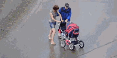 Μεθυσμένοι γονείς που δεν μπορούν να ισορροπήσουν τον εαυτό τους από το πολύ αλκοόλ, σέρνουν το παιδί τους με το καρότσι...