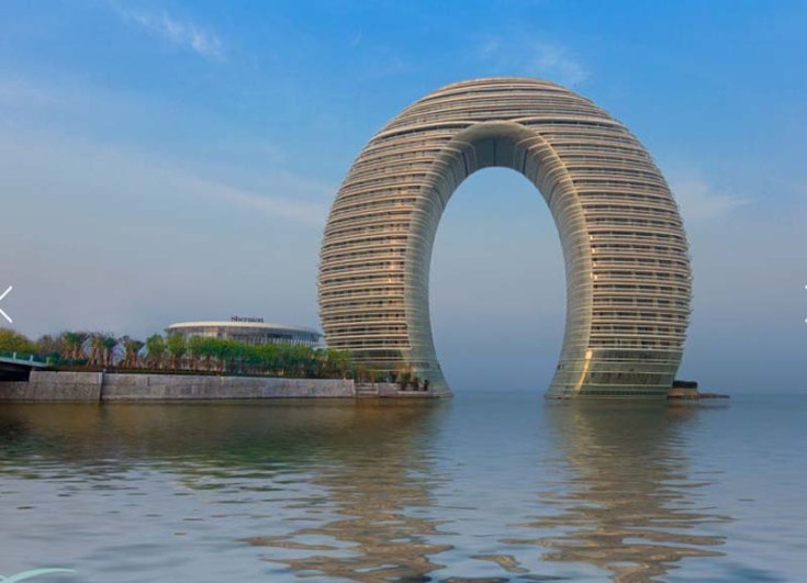 - με την υπογραφή του Μα Γιανσόνγκ, το οποίο μοιάζει με αστραφτερό δαχτυλίδι ή με πέταλο που αναδύεται από τα νερά της λίμνης Ταϊκού, στην πόλη Hushou.