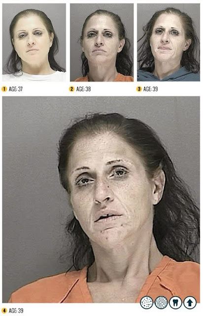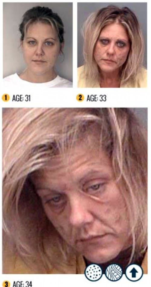 Η συνεχόμενη χρήση ναρκωτικών προκαλεί ανατριχιαστικές φθορές στο δέρμα, με ουλές και πληγές, καταλήγοντας στην πλήρη παραμόρφωση του προσώπου.
