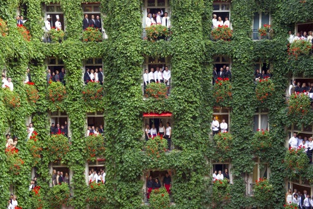 Με αφορμή το γεγονός, το προσωπικό σκορπίστηκε στα παράθυρα του αιθρίου και φωτογραφήθηκε με τον αιωνόβιο κισσό, που αποτελεί, κατά μία έννοια, σύμβολο της ιστορικότητας του κτιρίου.