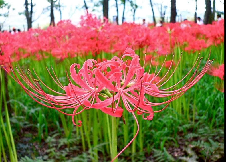 Μια θάλασσα από 5 εκατομμύρια κόκκινους κρίνους, τους λεγόμενους αραχνοειδείς (Lycoris radiata), υποδέχεται τους επισκέπτες που θέλουν να εορτάσουν την έλευση του φθινοπώρου στο πάρκο Κιντσάκουντα της Σαϊτάμα.