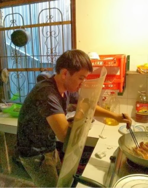 Το καλό το παλικάρι ξέρει κι άλλο κόλπο για να τηγανίσει χωρίς να καεί με το λάδι!!!!!