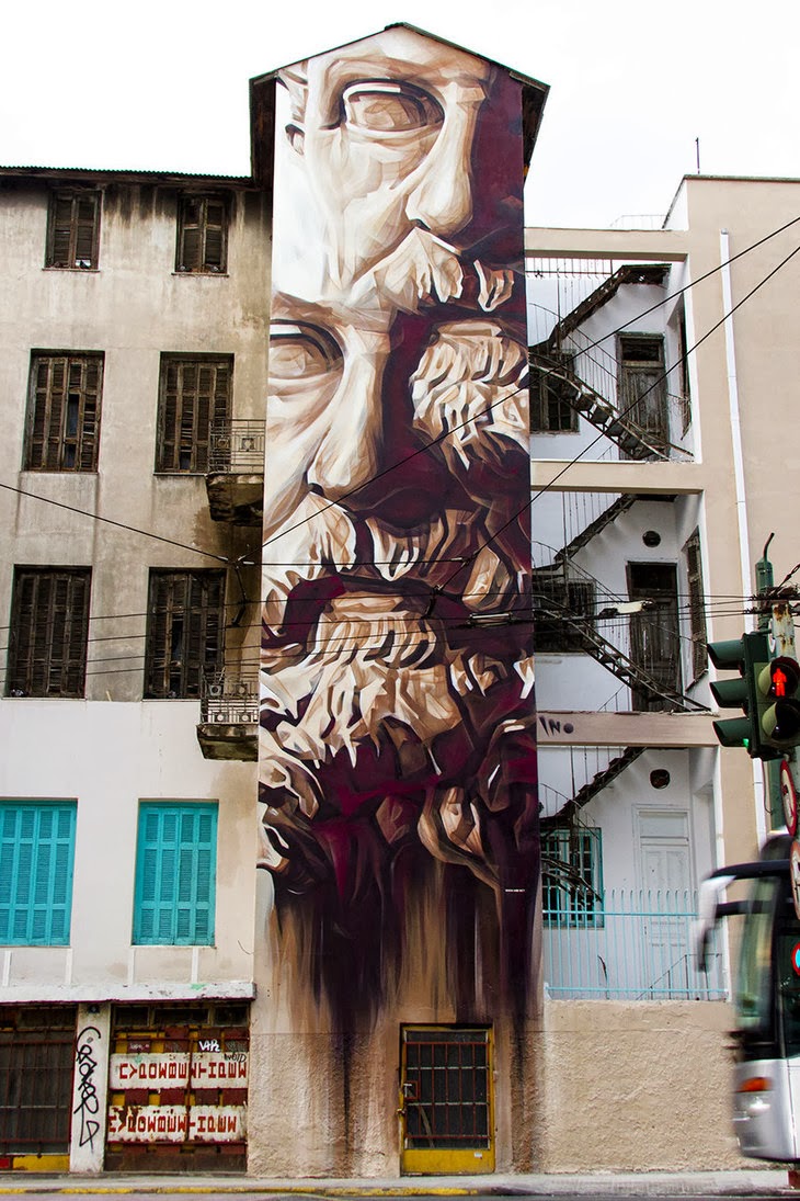 Το γιγάντιο έργο, που τιτλοφορείται «System of a Fraud» (το σύστημα της απάτης) δεν περνάει απαρατήρητο, καθώς οι μορφές του Σόλωνα του Νομοθέτη, αριστερή και δεξιά, ενωμένες καταρρέουν «ζητώντας» από τον σύγχρονο Αθηναίο να σκεφτεί. Αλλωστε «η αυθεντική street art δεν προορίζεται για τα σαλόνια αλλά για το μυαλό», λέει ο iNO.