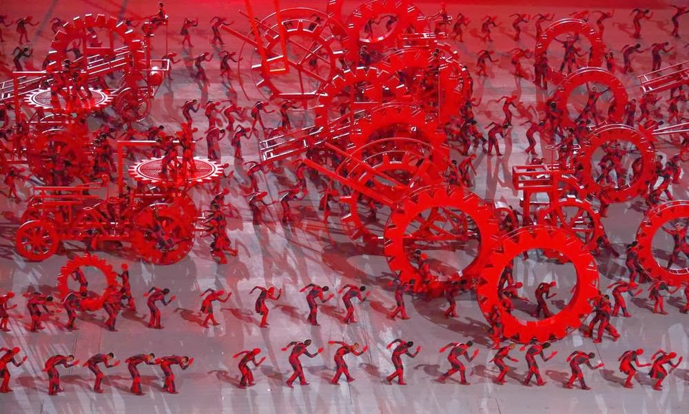 Συγκεκριμένα, όταν εκατοντάδες χορευτές σχημάτισαν τους ολυμπιακούς κύκλους, ο πέμπτος παρέμεινε κλειστός και άνοιξε ξαφνικα όπως φαίνεται στις φωτογραφίες.
