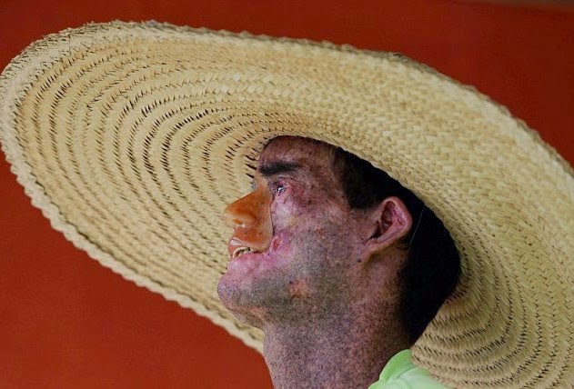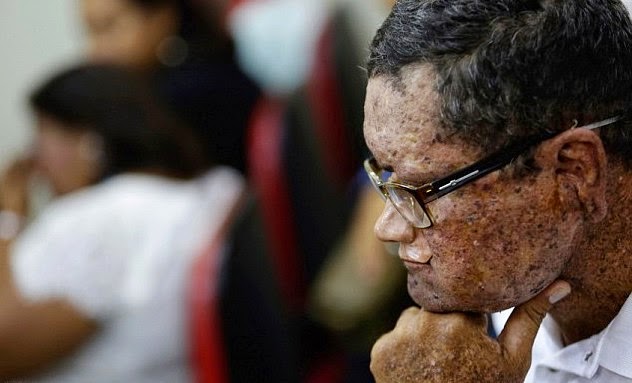 «Ημουν πάντα εκτεθειμένος στον ήλιο. Δούλευα, φύτευα και μάζευα ρύζι, φρόντιζα τα ζώα», λέει ο 38χρονος Ντζάλμα Αντόνιο Ζαρντίμ στην Daily Mail. «Οσο περνούσαν τα χρόνια, η κατάστασή μου χειροτέρευε», συμπληρώνει. Πλέον, δεν μπορεί να εργαστεί ως αγρότης. Ο ίδιος εμφάνισε τα πρώτα συμπτώματα της μελαγχρωματικής ξηροδερμίας στα εννιά του χρόνια, όταν άρχισαν να εμφανίζονται στο πρόσωπό του φακίδες και μικροί όγκοι. Μέχρι τώρα έχει υποβληθεί σε περισσότερες από 50 επεμβάσεις για να απαλλαγεί από αυτούς. Πλέον δεν πηγαίνει πουθενά χωρίς το τεράστιο καπέλο του, αλλά αυτό δεν τον βοηθά ιδιαίτερα.