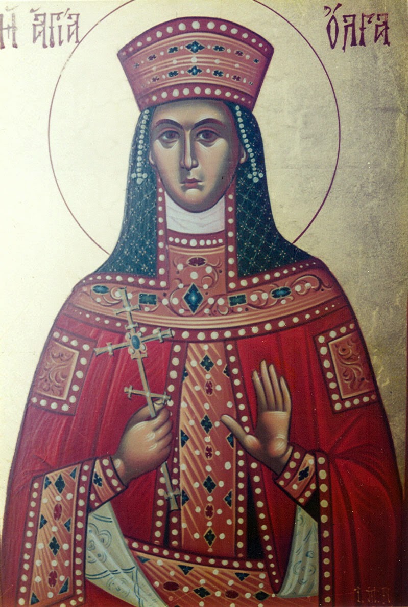 Η Αγία αυτή ήταν βασίλισσα της Ρωσίας και δια του αγίου Βαπτίσματος μετονομάσθηκε Ελένη, το έτος 957 μ.Χ.