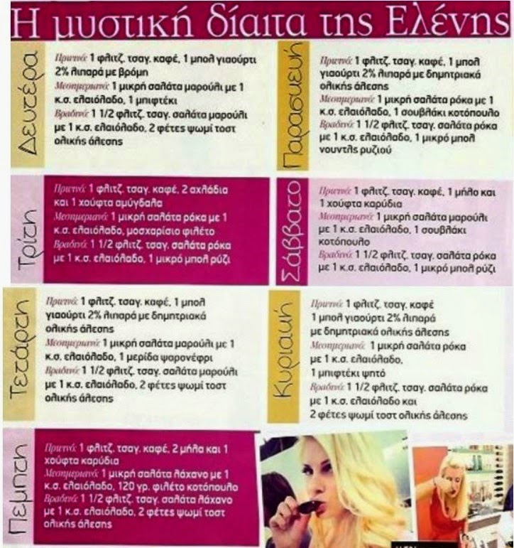 Ρίξτε μία ματιά στο πρόγραμμα διατροφής της Ελένης Μενεγάκη, που την βοήθησε να χάσει πέντε κιλά μέσα σε τρεις εβδομάδες, πάντα με τις οδηγίες και τις συμβουλές του γνωστού διατροφολόγου, Ηλία Σακκα.