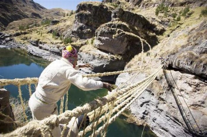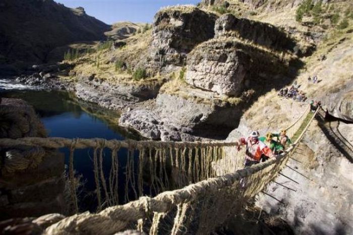 Η γέφυρα βρίσκεται στη νότια επαρχία του Κανάς (Cuzco, Περού), γίνεται με τα χέρια από ειδικούς «Qoya».