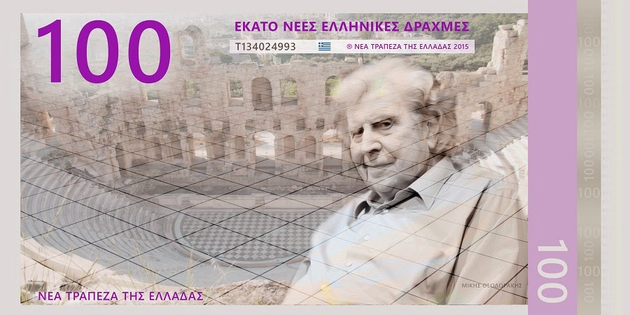 Στο χαρτονόμισμα των 100 δραχμών, ο Μίκης Θεοδωράκης, γιατί, αν βάζαμε κάποιον άλλον, θα μας τρέλαινε με την γκρίνια του και θα μας έφερνε γρουσουζιά.