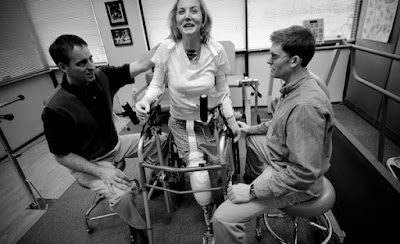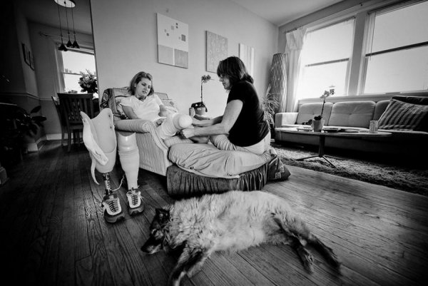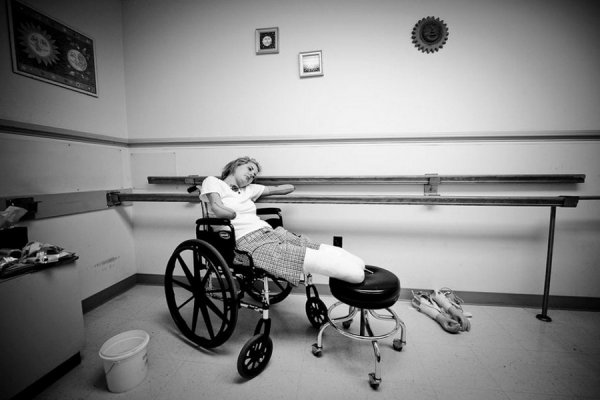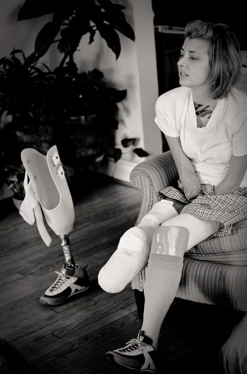 Έβαλε πολλά μοσχεύματα δέρματος μετά από τους ακρωτηριασμούς της, και ένα γόνατο συνεχίζει να μην επουλώνεται.